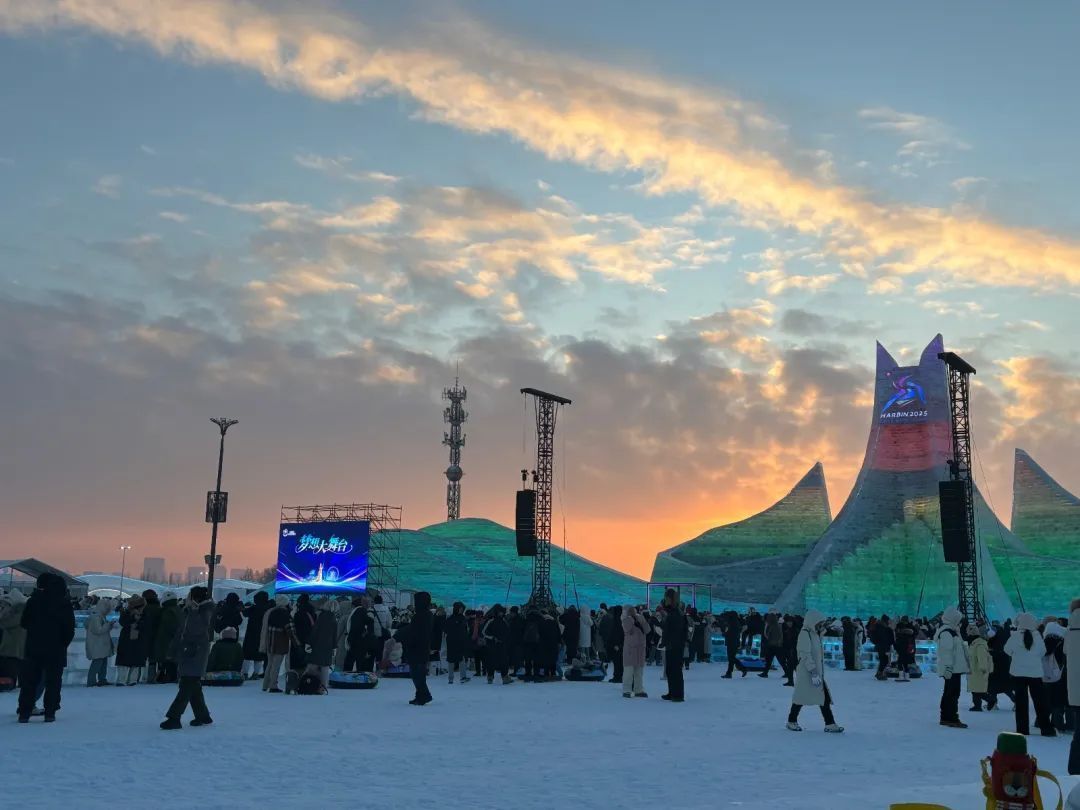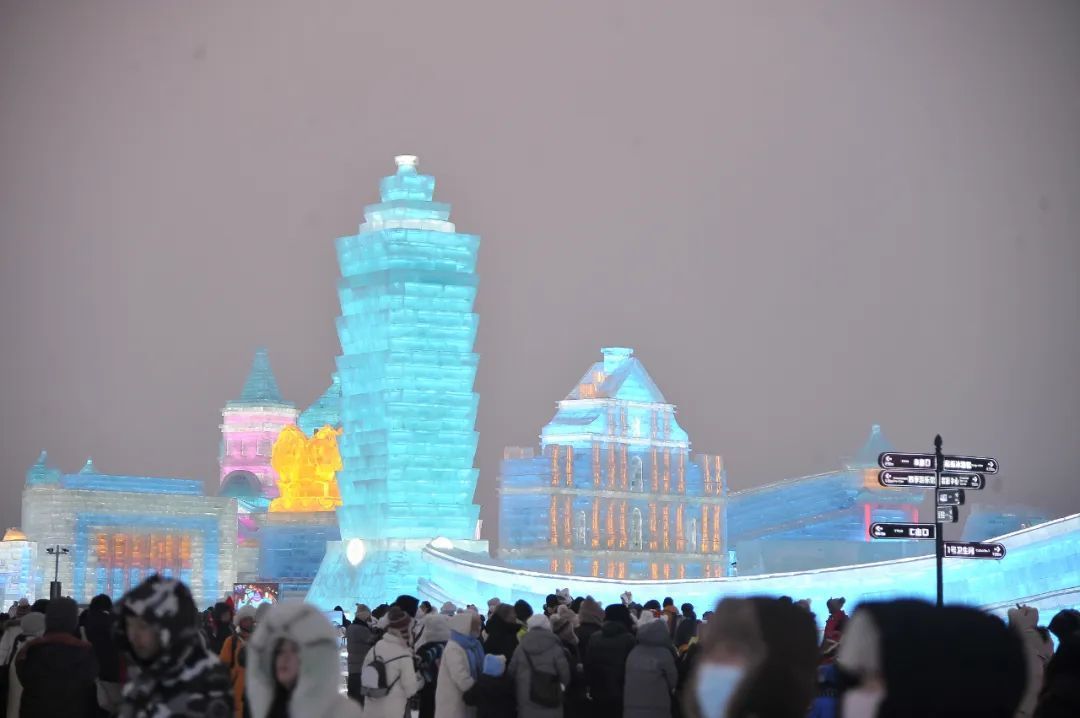 哈尔滨冰雪大世界夜间亮灯